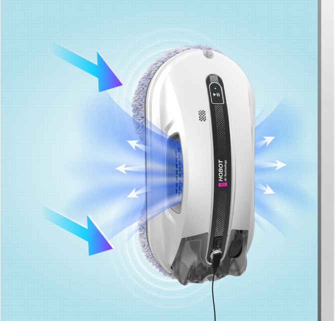 Высокая сила притяжения робота к поверхности (до 5кг) способна удержать в пять раз больший чем вес робота (1 кг). Благодаря этому Hobot-R3 надёжно удерживается на вертикальных поверхностях и эффективно удаляет пыль и грязь
