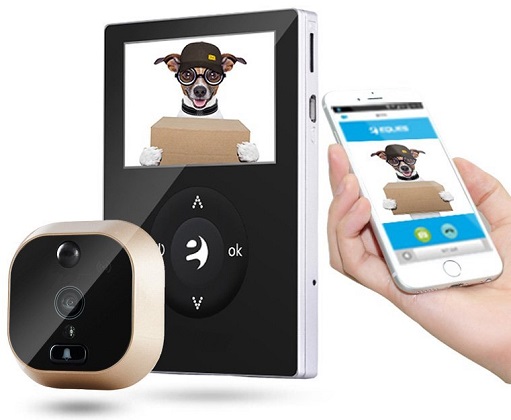 • Связь со смартфонами на базе iOS/Android — видеоглазок имеет встроенный Wi-Fi модуль, что позволяет ему подключаться к интернету и связываться со смартфоном владельца, где бы он ни находился. На смартфон через фирменное приложение могут передаваться отснятые фото- и видеоматериалы, также возможна трансляция видеосигнала с камеры в режиме реального времени.